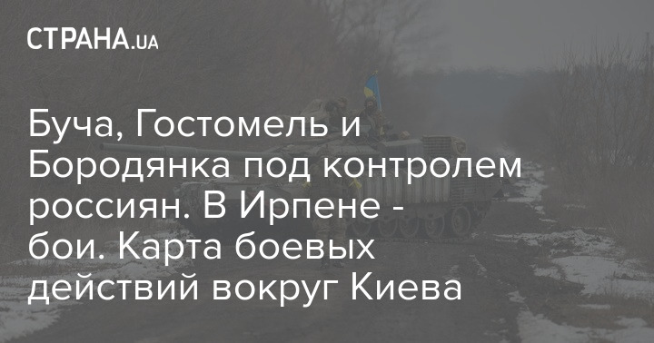 Из нее следует, что Буча, Гостомель, Бородянка под контролем россиян. Под Макаровым (выход на Житомирскую трассу) идут передвижения российской техники, в Ирпене бои, а в Василькове действуют диверсанты.