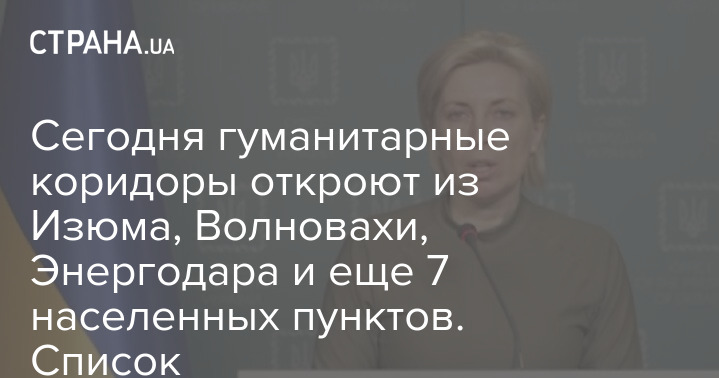 Сегодня гуманитарные коридоры откроют из Изюма, Волновахи, Энергодара и еще 7 населенных пунктов. Список