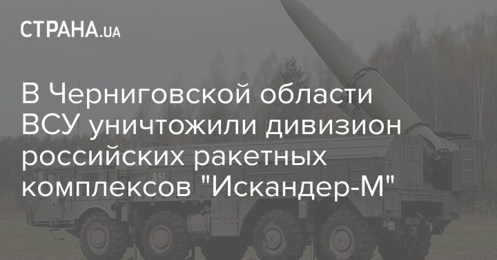 В Черниговской области Вооруженные силы Украины и уничтожили дивизион баллистических оперативно-тактических ракетных комплексов "Искандер-М", который обстреливал мирное население.