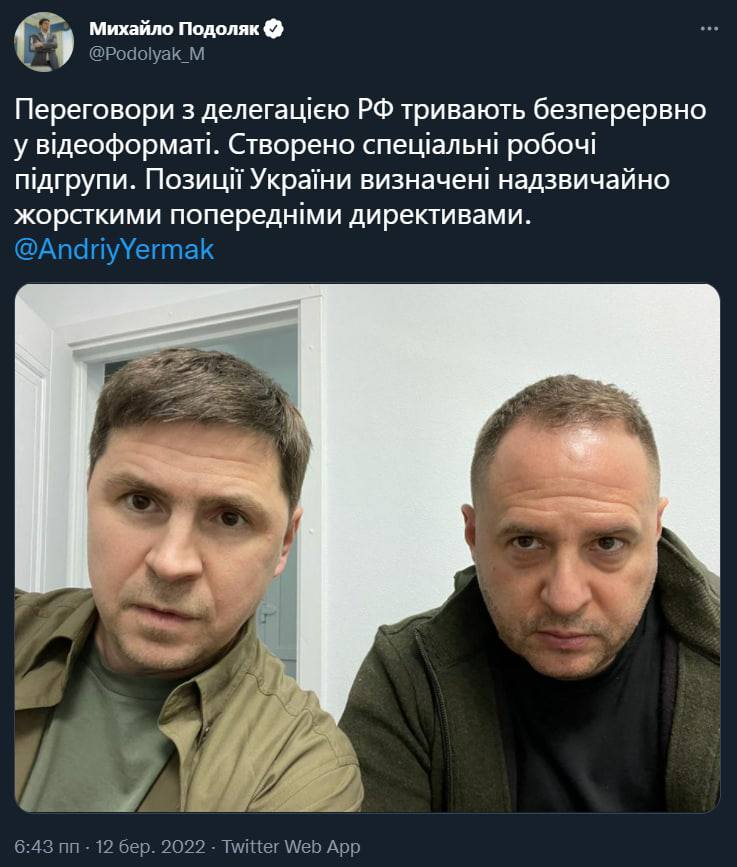 18.50 Подоляк подтвердил переговоры Украины с Россией в видеоформате. Говорит, что созданы рабочие группы.