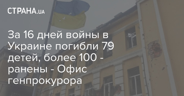 "За 16 дней войны в Украине уже погибли 79 детей и почти 100 ранены. Больше всего пострадавших в Киевской, Харьковской, Донецкой, Сумской, Херсонской и Житомирской областях. Эта цифра не является окончательной из-за отсутствия возможности досмотра мест обстрела, где вооруженные силы РФ ведут активные боевые действия", - говорится в сообщении.