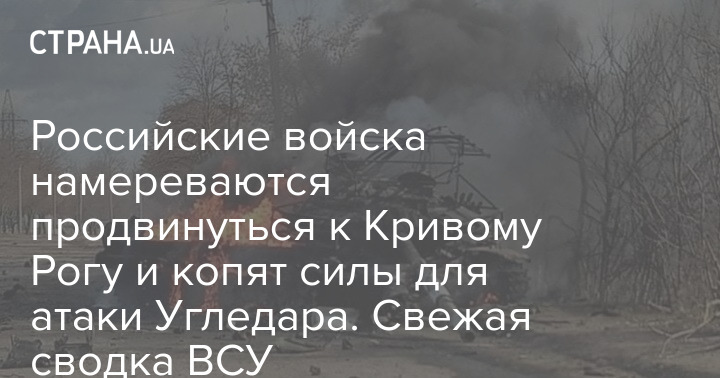 Российские войска намереваются продвинуться к Кривому Рогу и копят силы для атаки Угледара. Свежая сводка ВСУ