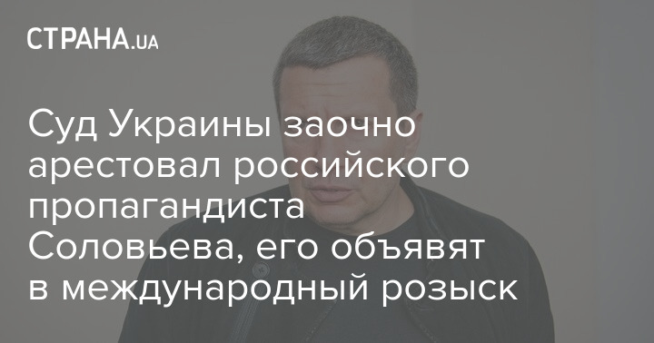 Госбюро расследований Украины заочно сообщило о подозрении российскому телеведущему, пропагандисту и члену правящей политической партии "Единая Россия" Владимиру Соловьеву. Ему инкриминируют публичные призывы к изменению государственной границы Украины, что привело к тяжким последствиям - гибели людей.