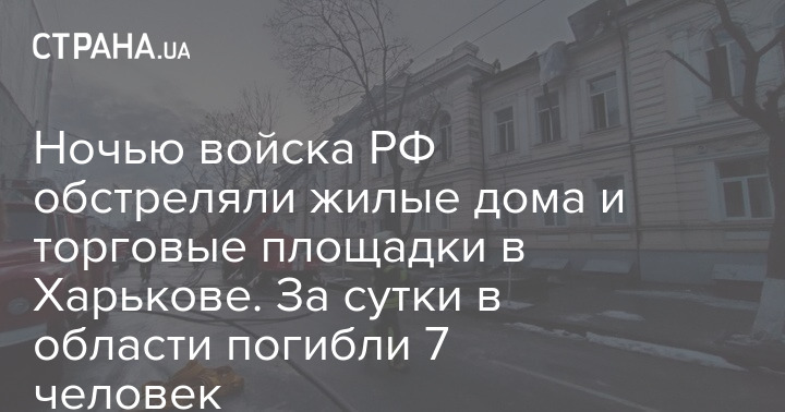 Ночью войска РФ обстреляли жилые дома и торговые площадки в Харькове. За сутки в области погибли 7 человек