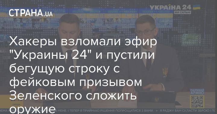 "Бегущую строчку телеканала "Украина 24" сломали вражеские хакеры и транслируют сообщения Зеленского о якобы "капитуляции". Друзья, мы не раз об этом предупреждали. Это фейк! Никто сдаваться не собирается. Тем более, в условиях, когда армия РФ терпит поражение в боях с Украинской армией", - говорится в заявлении канала.
