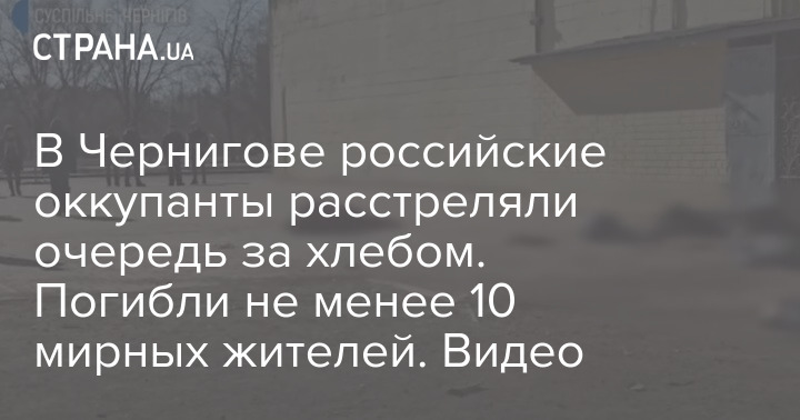 Не менее 10 мирных жителей Чернигова стали жертвами российских оккупантов. Враг обстрелял людей, стоявших в очереди за хлебом. Сообщается о как минимум 10 погибших, передает "Общественное" со ссылкой на очевидцев трагедии.