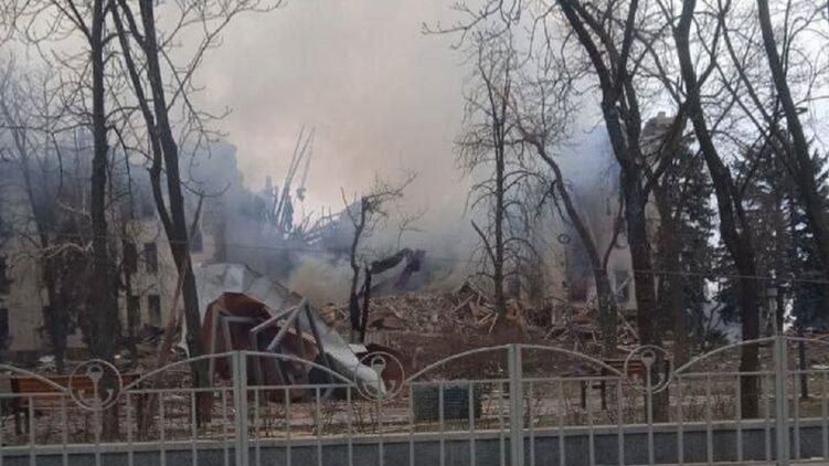 16 марта российские войска нанесли авиаудар по театру. Фото: Telegram / "Киев Оперативный"