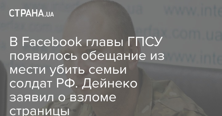 Поздно вечером в четверг, 17 марта, на Facebook-странице главы Госпогранслужбы Сергея Дейнеко появился противоречивый пост на русском языке. В нем он грозит убить семьи российских военных, которые причастны к убийству украинских пограничников в Харьковской области. Спустя некоторое время пост исчез, а Дейнеко сообщил, что его страницу взломали.