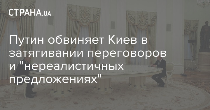 В разговоре с канцлером ФРГ Олафом Шольцем президент РФ Владимир Путин заявил, что "Киев старается затянуть украино-российские переговоры" и выдвигает все новые нереалистичные предложения.