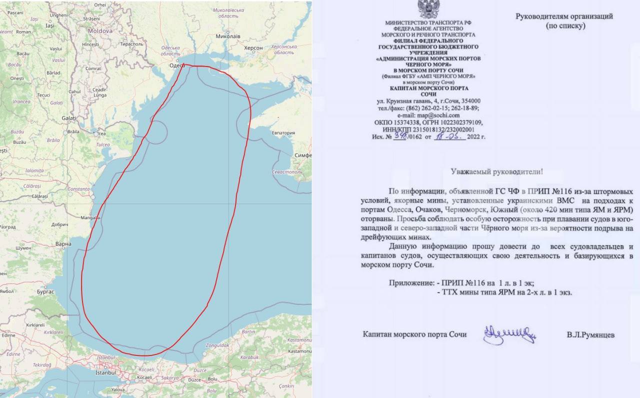 10.59 Россия объявила о том, что северо-западная часть Чёрного моря (то есть фактически вся акватория, примыкающая к Украине) опасна для судоходства из-за украинских мин.