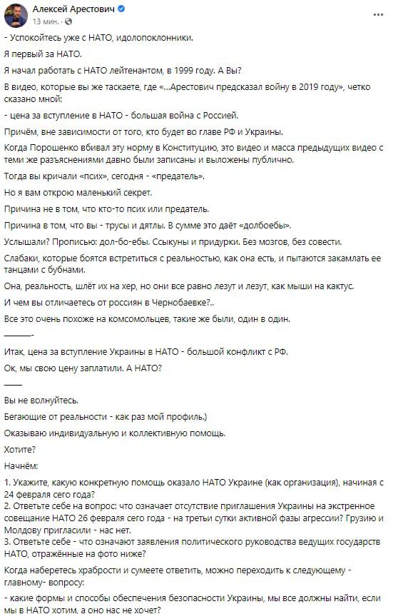 11.38 Новая сводка от Арестовича. Говорит, что задействованы "все возможные и невозможные" международные механизмы для деблокирования Мариуполя.