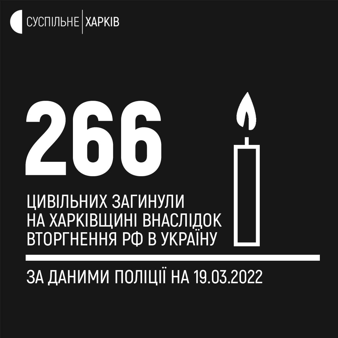 23:31 С начала войны в Харьковской области погибло, по данным полиции, 266 мирных жителей.