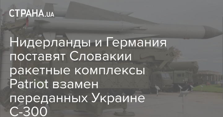 Нидерланды и Германия по просьбе НАТО поставят Словакии американские зенитные ракетные комплексы Patriot ("Пэтриот") взамен передаваемых Украине ее систем ПВО С-300.