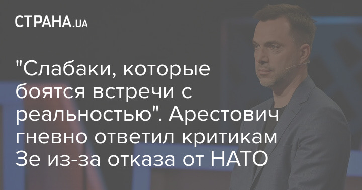 Советник главы Офиса президента Алексей Арестович гневно ответил политикам, критикующим президента Украины Владимира Зеленского из-за отказа от НАТО. Пост появился в Facebook.