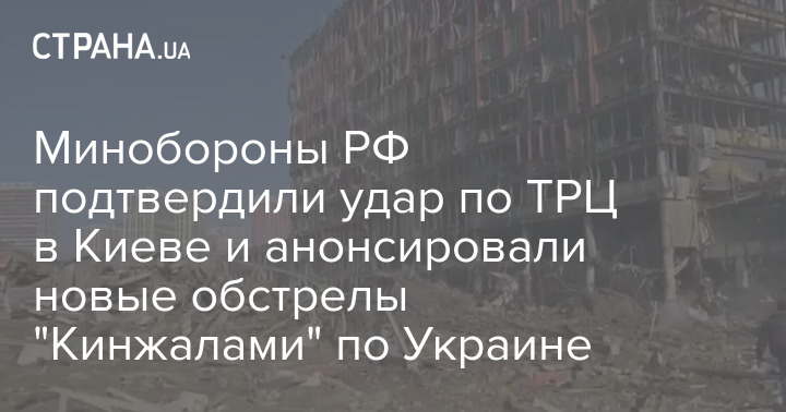 Минобороны РФ подтвердили удар по ТРЦ в Киеве и анонсировали новые обстрелы "Кинжалами" по Украине