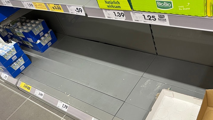 Начался дефицит подсолнечного масла, которое поставлялось из Украины, а также муки и макарон. Покупатели в начале марта сообщали, что полки в магазинах Дюссельдорфа пусты.