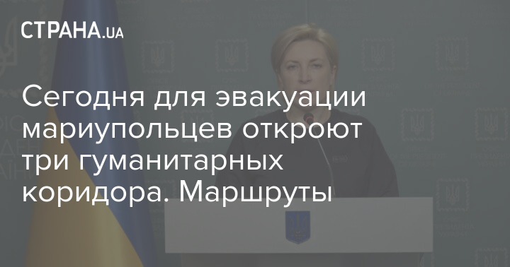 Министр по вопросам реинтеграции временно оккупированных территорий Украины Ирина Верещук на брифинге рассказала о работе гуманитарных коридоров во вторник, 22 марта.