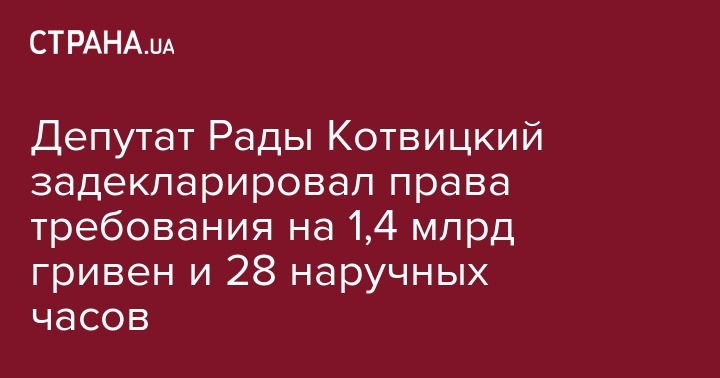 Депутат Рады Котвицкий задекларировал права требования на 1,4 млрд гривен и 28 наручных часов
