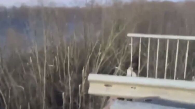 Мост, который соединял Чернигов и Киев, разбомбили. Скриншот из видео