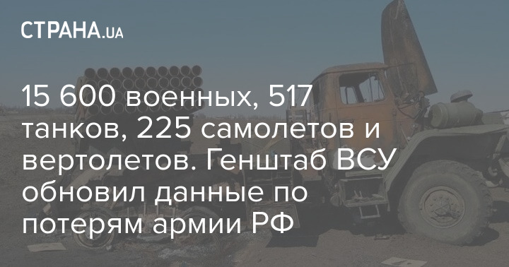 15 600 военных, 517 танков, 225 самолетов и вертолетов. Генштаб ВСУ обновил данные по потерям армии РФ