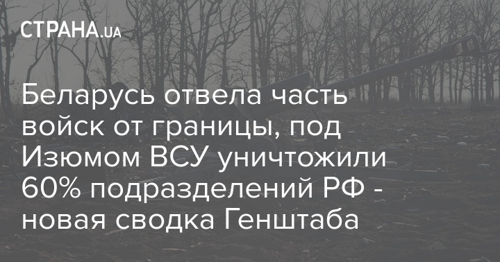 Беларусь отвела часть войск от границы, под Изюмом ВСУ уничтожили 60% подразделений РФ - новая сводка Генштаба