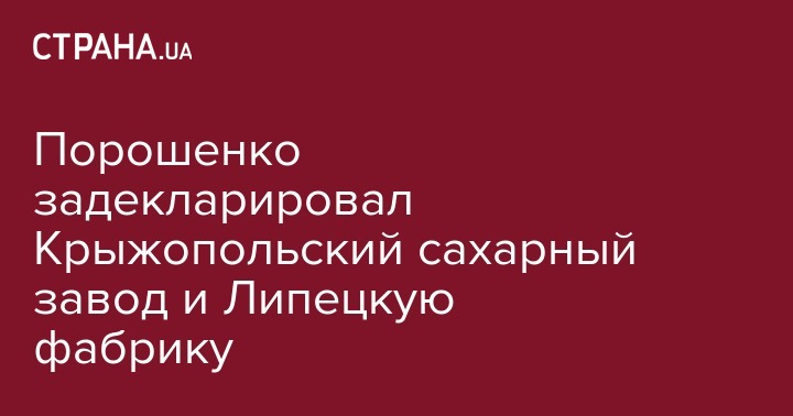 Помимо задекларированных различных предметов роскоши, коллекций картин,часов, денежных активов, фирм, автомобилей, множества гектаров земли и жилих помещений в империю Петра Порошенко вошел также и Крыжопольский сахарный завод, а также знаменитая Липецкая кондитерская фабрика.