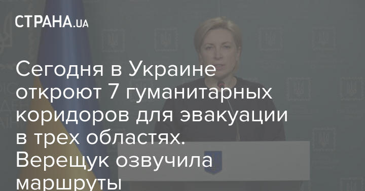 Министр по вопросам реинтеграции временно оккупированных территорий Украины Ирина Верещук на брифинге рассказала, какие гуманитарные коридоры согласованы на сегодня, 24 марта.