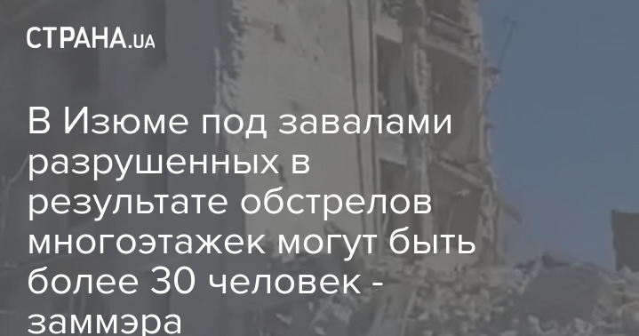 В Изюме Харьковской области под завалами разрушенных в результате обстрелов многоэтажек могут находиться более 30 человек, спасатели не могут добраться к ним без спецтехники.