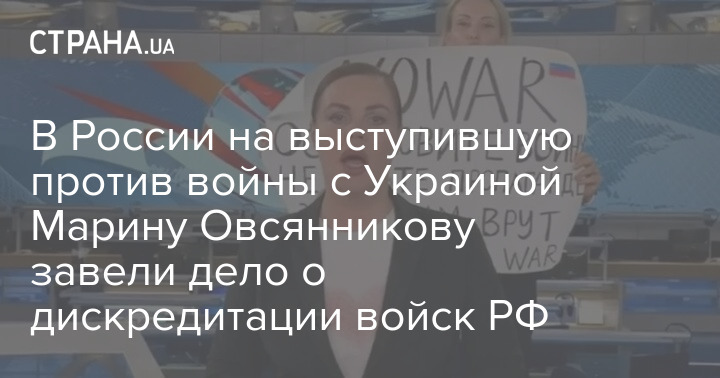 На экс-редактора "Первого канала" Марину Овсянникову, которая устроила антивоенную акцию в прямом эфире, завели дело о дискредитации российских войск (часть 1 статьи 20.3.3 КоАП).