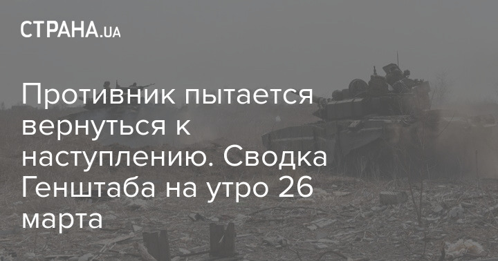 В субботу, 26 марта, Генеральный штаб Украины рассказал, что российско-оккупационные войска продолжают комплектовать свои подразделения новыми силами, пытаясь вернуться к наступлению. Об этом говорится в сводке ведомства.