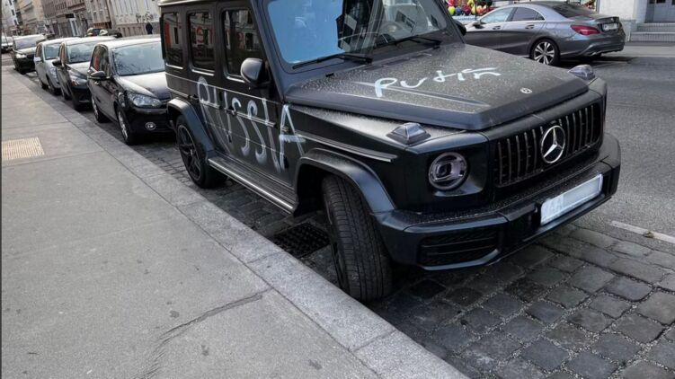 Так, на автомобилях Mercedes GLE и Mercedes G500 в разных районах Вены были написаны краской слова "Россия" и "Путин", а также замазывали номерные знаки.