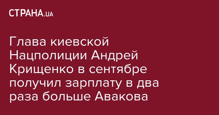 Глава киевской Нацполиции Андрей Крищенко в сентябре получил зарплату в два раза больше Авакова