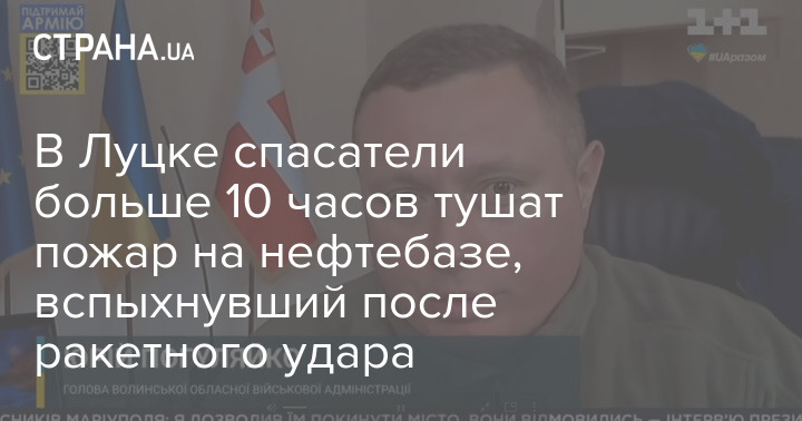 В Луцке продолжают тушить пожар на нефтебазе, по которой накануне ночью был совершен ракетный удар.