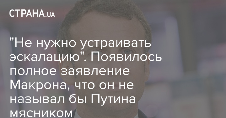 "Не нужно устраивать эскалацию". Появилось полное заявление Макрона, что он не называл бы Путина мясником