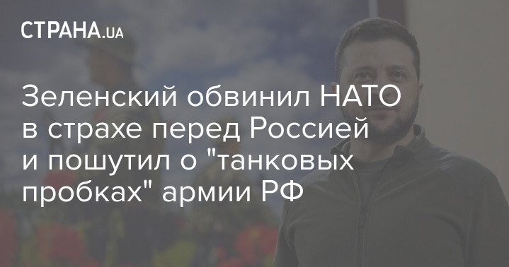 "(Запад - Ред.) не может сказать: "Мы поможем вам в ближайшие недели". Это не позволяет нам разблокировать оккупированные Россией города, развозить там еду жителям, брать военную инициативу в свои руки". И как бы не был силен дух народа Украины, у России больше огневой мощи. У русских есть тысячи военных машин, и они идут, идут и идут. Если мы можем пошутить в этой ситуации, я это сделаю. Есть города, где так много танков, что они не могут уйти. У них танковые пробки", - заявил Зеленский.