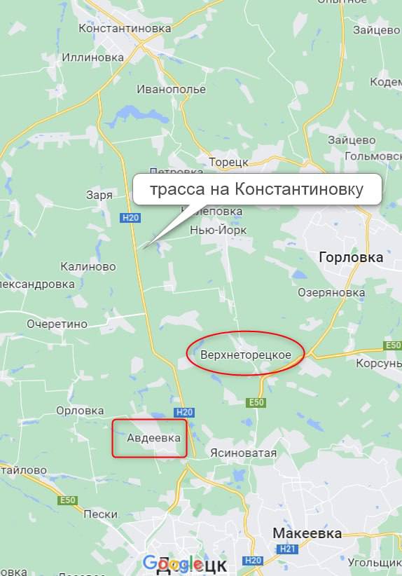 Также минобороны РФ сообщило о выходе на южные границы Новоселовки. Населенных пунктов с этим названием в Донецкой области три, но, судя по всему, речь идет о поселке, примыкающем непосредственно к трассе на Константиновку.