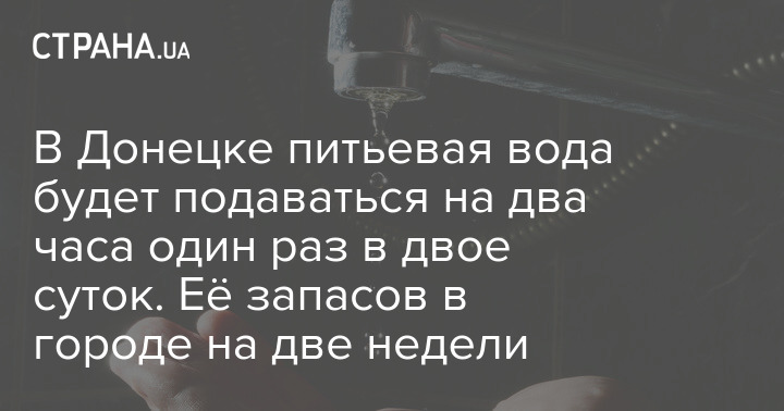 В Донецке сокращена подача питьевой воды. Она будет осуществляться с 19.00 до 21.00 один раз в 48 часов.