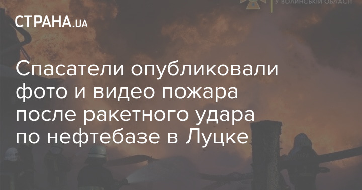 Государственная служба по чрезвычайным ситуациям (ГСЧС) опубликовала фото и видео последствий попадания российской ракеты по нефтебазе в Луцке.