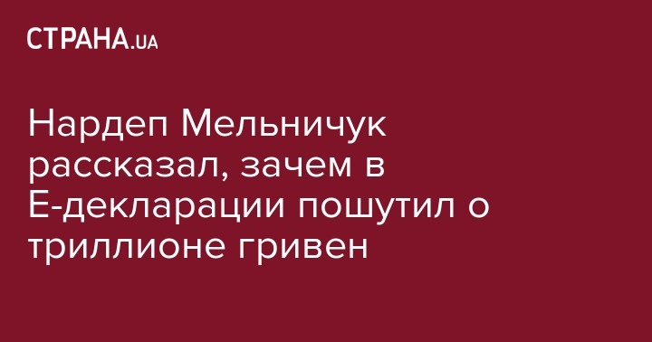 Нардеп Мельничук рассказал, зачем в E-декларации пошутил о триллионе гривен