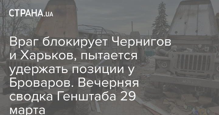 Во вторник вечером, 29 марта, Генштаб ВСУ опубликовал новую сводку с фронта. Сообщается, что противник осуществляет отвод отдельных подразделений с территории Киевской и Черниговской областей, а также перегруппировку для сосредоточения основных усилий на Слобожанском и Донецком направлениях.