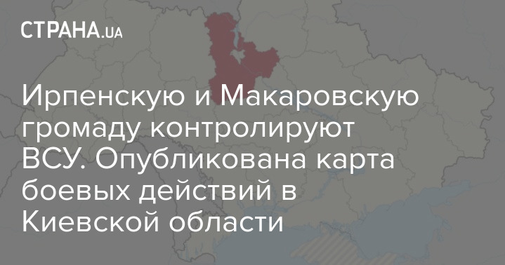 Появилась карта военной ситуации в Киевской области. На ней представлено территории, которые временно контролируются российскими войсками. Судя по карте, Ирпень и Макаровская громада, где несколько дней до этого были сильные бои. В Гостомельской громаде сейчас, судя по карте, проводится "зачистка" от российских оккупантов.