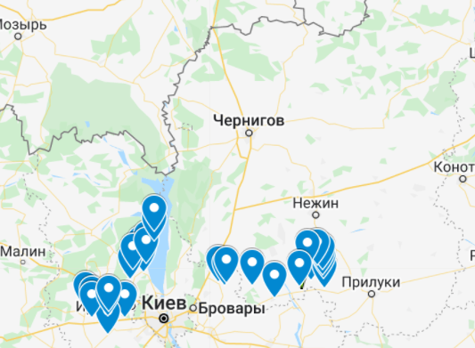 Если отдалить карту и посмотреть, какая часть Киевской и Черниговской областей оставлена российской армией, картина следующая: