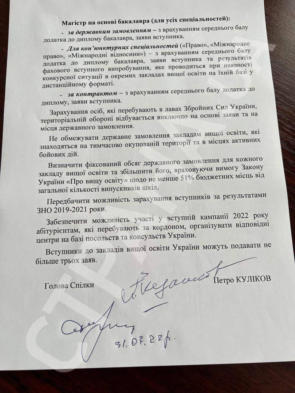 В распоряжении "Страны" оказались предложения союза ректоров Украины по поводу Порядка поступления в ВУЗы в 2022 году в условиях военного положения.