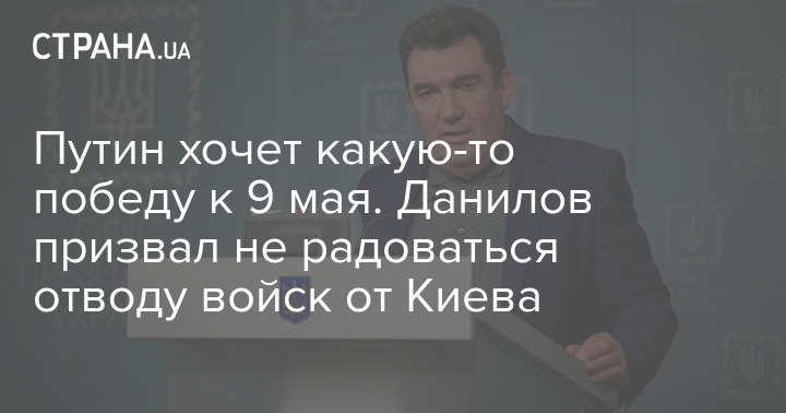 Путин хочет какую-то победу к 9 мая. Данилов призвал не радоваться отводу войск от Киева