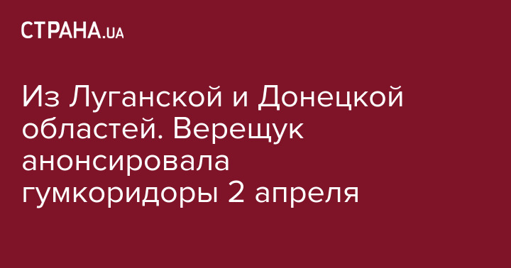 Из Луганской и Донецкой областей. Верещук анонсировала гумкоридоры 2 апреля
