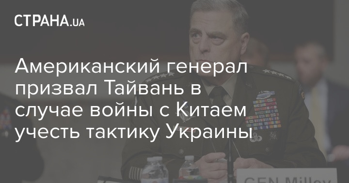 Председатель Комитета начальников штабов (КНШ) Вооруженных сил США генерал Марк Милли заявил, что Тайваню необходимо учитывать тактику действий, которую демонстрирует Украина в войне с Россией.