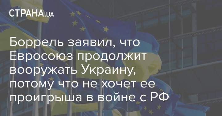 Боррель заявил, что Евросоюз продолжит вооружать Украину, потому что не хочет ее проигрыша в войне с РФ