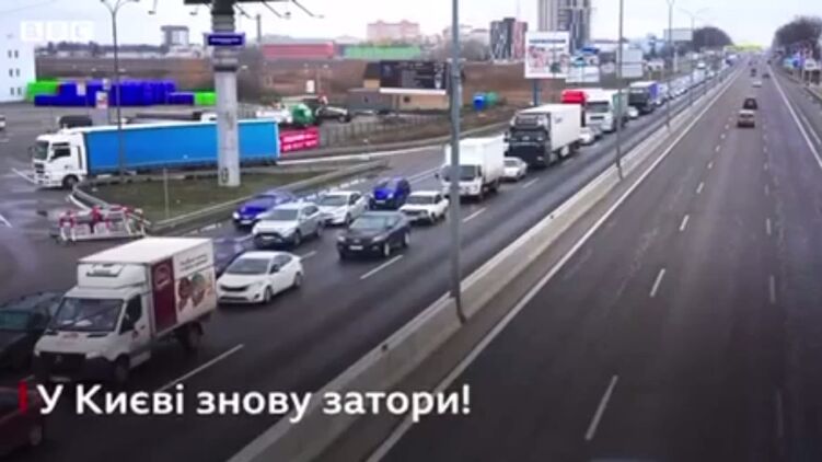 Под Киевом из-за желающих вернуться в столицу горожан образовались огромные пробки. Видео