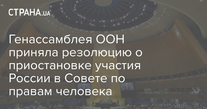 Генеральная ассамблея Организации Объединенных Наций приняла резолюцию о приостановке участия России в Совете по правам человека.