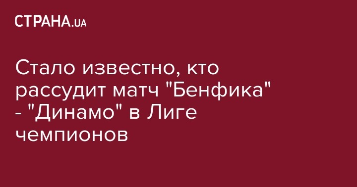 Сегодня, 1 ноября, пресс-группа УЕФА назвала судейскую бригаду, которая обслужит матч Лиги чемпионов между лиссабонской "Бенфикой" и киевским "Динамо".
